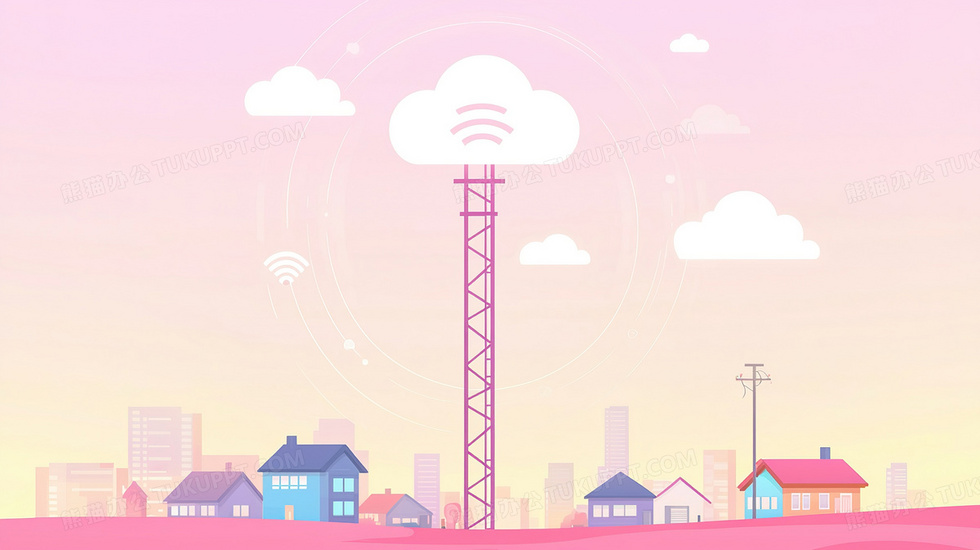 本作品内容为网络信息通讯信号塔机房云端数据传输插画, 格式为 jpg, 大小2 MB, 图片尺寸为2912 x 1632, 源文件无水印, 欢迎使用熊猫办公。 如认为平台内容涉嫌侵权,可通过邮件:tousu@tukuppt.com提出书面通知,我们将及时处理。