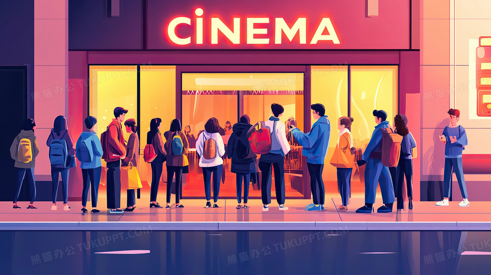 本作品内容为电影院门口的人群插画, 格式为 jpg, 大小3 MB, 图片尺寸为2912 x 1632, 源文件无水印, 欢迎使用熊猫办公。 如认为平台内容涉嫌侵权,可通过邮件:tousu@tukuppt.com提出书面通知,我们将及时处理。