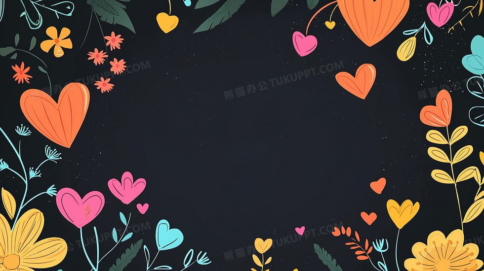 本作品内容为植物花卉边框创意黑色背景, 格式为 jpg, 大小2 MB, 图片尺寸为2912 x 1632, 作品中背景图片无需修改, 源文件无水印,可以直接使用, 欢迎使用熊猫办公。 如认为平台内容涉嫌侵权,可通过邮件:tousu@tukuppt.com提出书面通知,我们将及时处理。