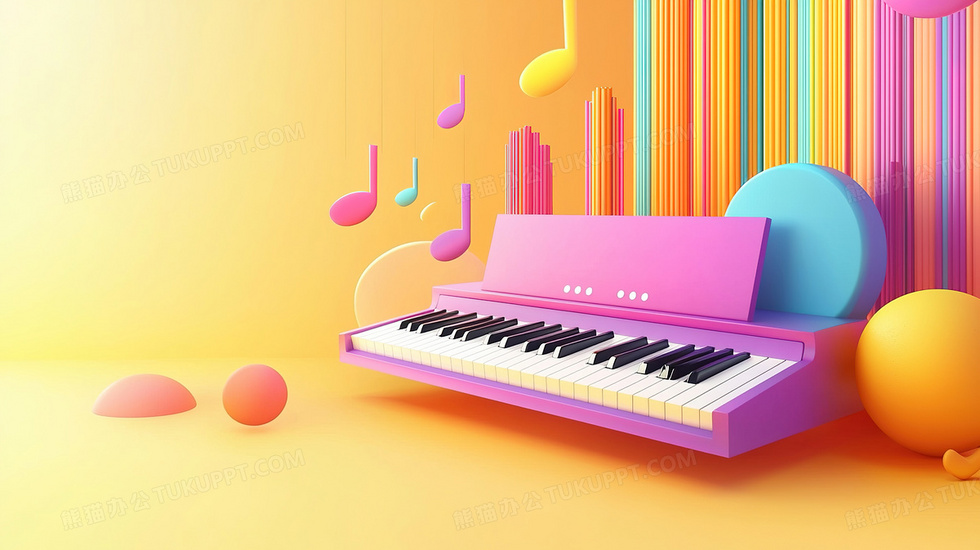 本作品内容为乐器电子琴音符彩色创意背景, 格式为 jpg, 大小2 MB, 图片尺寸为2912 x 1632, 作品中背景图片无需修改, 源文件无水印,可以直接使用, 欢迎使用熊猫办公。 如认为平台内容涉嫌侵权,可通过邮件:tousu@tukuppt.com提出书面通知,我们将及时处理。