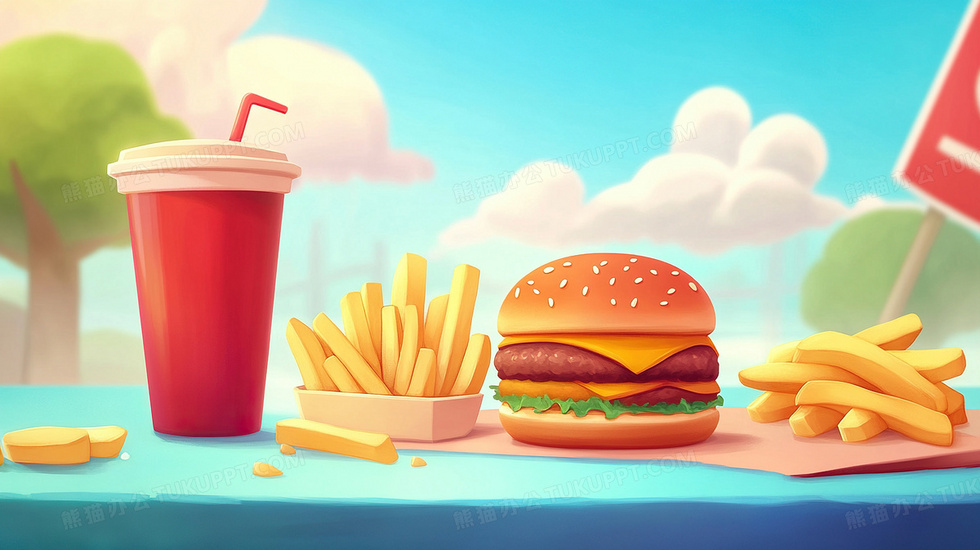 本作品内容为汉堡可乐快餐食物膨化食品插画, 格式为 jpg, 大小3 MB, 图片尺寸为2912 x 1632, 源文件无水印, 欢迎使用熊猫办公。 如认为平台内容涉嫌侵权,可通过邮件:tousu@tukuppt.com提出书面通知,我们将及时处理。