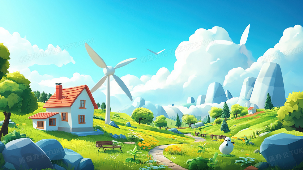 本作品内容为环保清洁能源风力发电插画, 格式为 jpg, 大小3 MB, 图片尺寸为2912 x 1632, 源文件无水印, 欢迎使用熊猫办公。 如认为平台内容涉嫌侵权,可通过邮件:tousu@tukuppt.com提出书面通知,我们将及时处理。