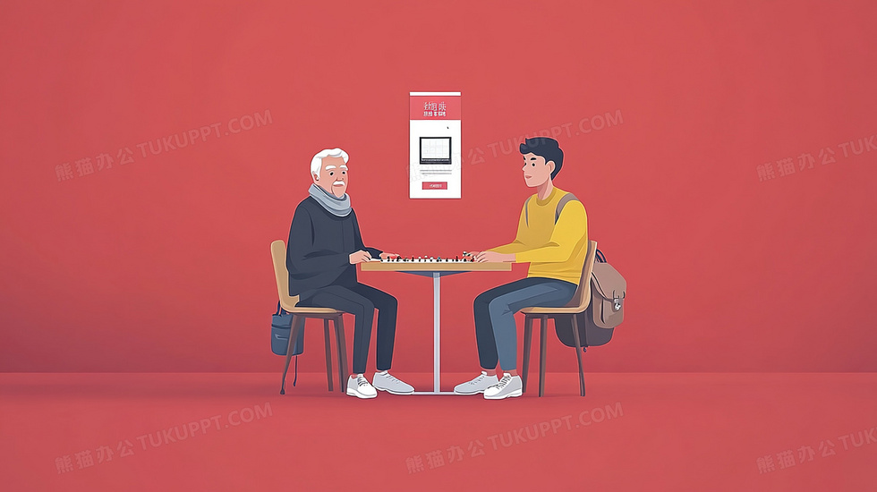 本作品内容为卡通风下棋的老人和青年背景, 格式为 jpg, 大小2 MB, 图片尺寸为2912 x 1632, 作品中背景图片无需修改, 源文件无水印,可以直接使用, 欢迎使用熊猫办公。 如认为平台内容涉嫌侵权,可通过邮件:tousu@tukuppt.com提出书面通知,我们将及时处理。