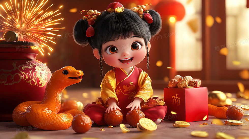 本作品内容为3D春节手拿红包金币卡通女孩与蛇插画, 格式为 jpg, 大小3 MB, 图片尺寸为2912 x 1632, 源文件无水印, 欢迎使用熊猫办公。 如认为平台内容涉嫌侵权,可通过邮件:tousu@tukuppt.com提出书面通知,我们将及时处理。