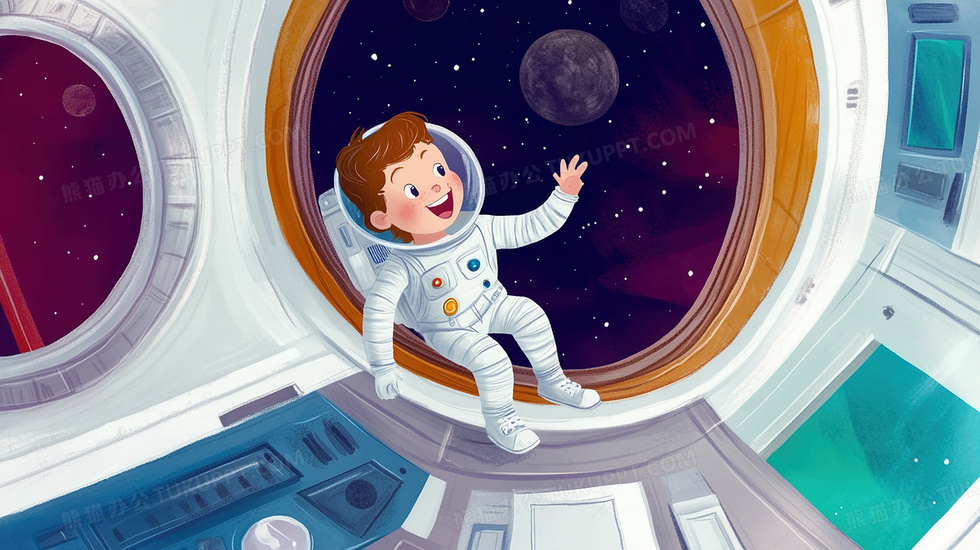 本作品内容为宇宙航天月球星空太空舱内的宇航员插画, 格式为 jpg, 大小3 MB, 图片尺寸为2912 x 1632, 源文件无水印, 欢迎使用熊猫办公。 如认为平台内容涉嫌侵权,可通过邮件:tousu@tukuppt.com提出书面通知,我们将及时处理。