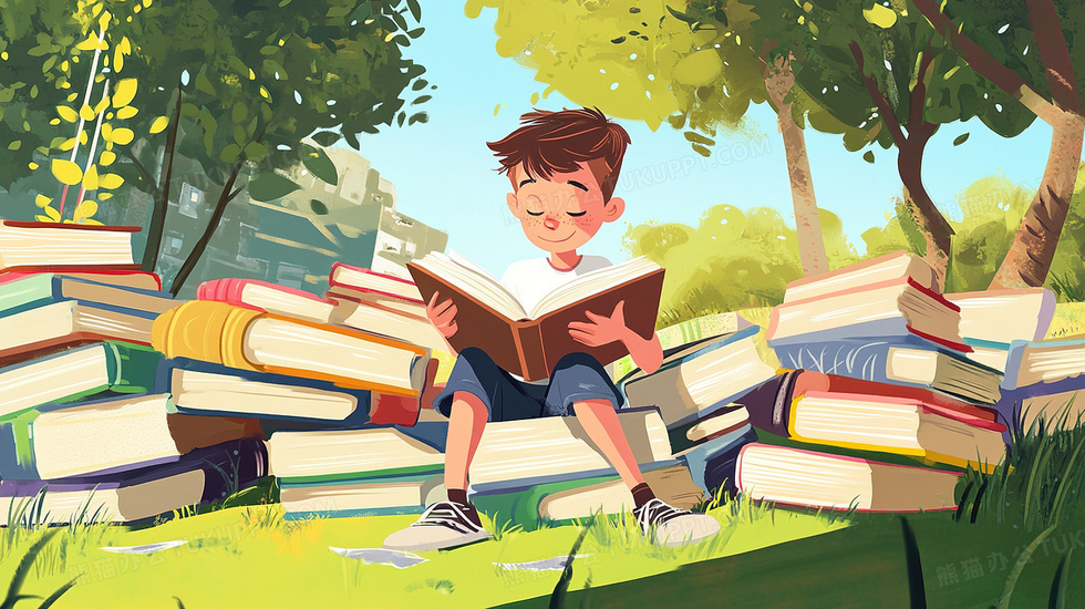 本作品内容为户外草坪上阅读书籍遨游在知识海洋的卡通男孩插画, 格式为 jpg, 大小3 MB, 图片尺寸为2912 x 1632, 源文件无水印, 欢迎使用熊猫办公。 如认为平台内容涉嫌侵权,可通过邮件:tousu@tukuppt.com提出书面通知,我们将及时处理。
