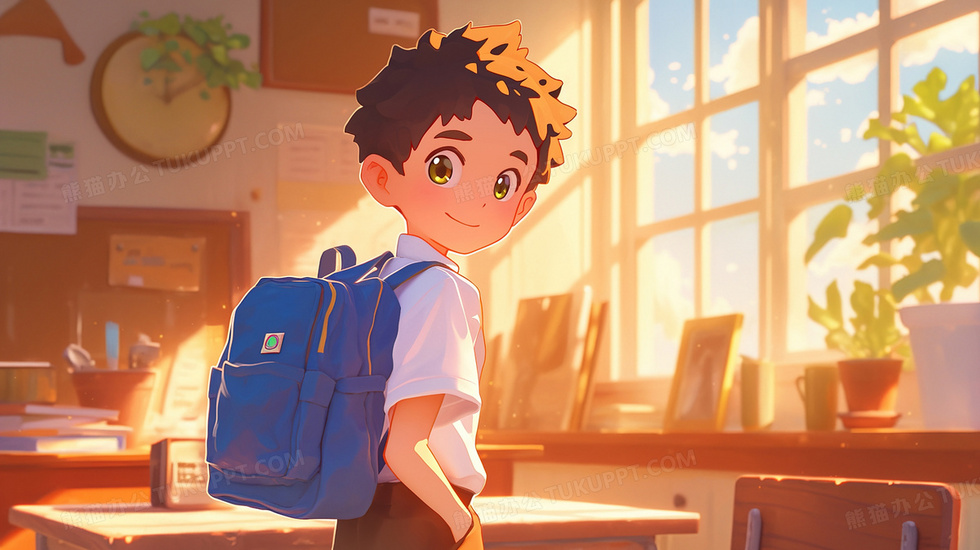 本作品内容为背着书包的阳光男高中生人物特写插画, 格式为 jpg, 大小2 MB, 图片尺寸为2912 x 1632, 源文件无水印, 欢迎使用熊猫办公。 如认为平台内容涉嫌侵权,可通过邮件:tousu@tukuppt.com提出书面通知,我们将及时处理。