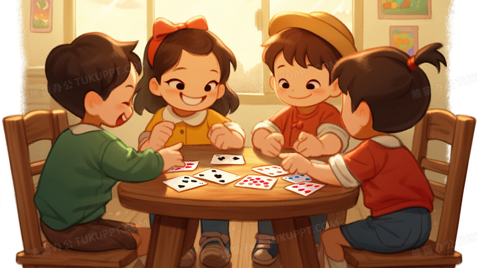 本作品内容为娱乐生活打扑克牌儿童卡通插画, 格式为 jpg, 大小2 MB, 图片尺寸为2912 x 1632, 源文件无水印, 欢迎使用熊猫办公。 如认为平台内容涉嫌侵权,可通过邮件:tousu@tukuppt.com提出书面通知,我们将及时处理。