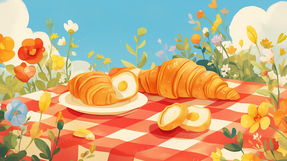 本作品内容为红色的格子桌布上摆着可颂面包插画, 格式为 jpg, 大小7 MB, 图片尺寸为2912 x 1632, 源文件无水印, 欢迎使用熊猫办公。 如认为平台内容涉嫌侵权,可通过邮件:tousu@tukuppt.com提出书面通知,我们将及时处理。