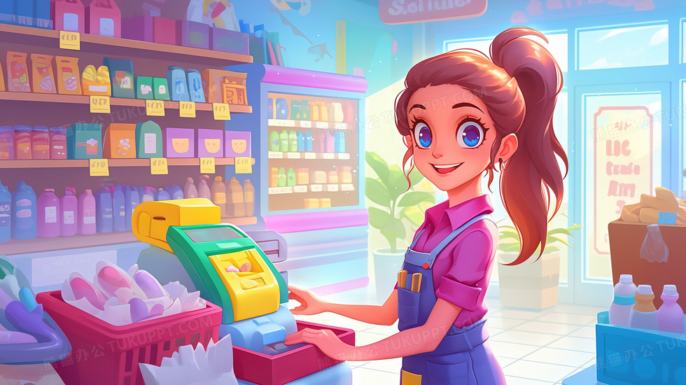 本作品内容为开心情绪微笑的女收银员插画, 格式为 jpg, 大小3 MB, 图片尺寸为2912 x 1632, 源文件无水印, 欢迎使用熊猫办公。 如认为平台内容涉嫌侵权,可通过邮件:tousu@tukuppt.com提出书面通知,我们将及时处理。