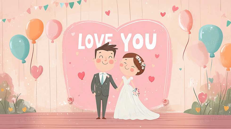 本作品内容为粉色浪漫婚礼新郎新娘结婚插画, 格式为 jpg, 大小2 MB, 图片尺寸为2912 x 1632, 源文件无水印, 欢迎使用熊猫办公。 如认为平台内容涉嫌侵权,可通过邮件:tousu@tukuppt.com提出书面通知,我们将及时处理。