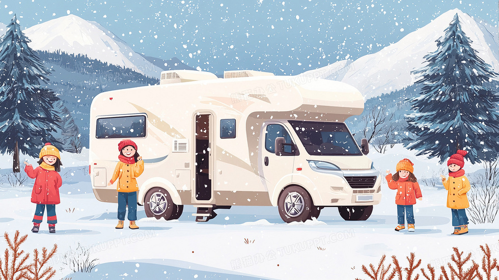 本作品内容为冬天旅游的孩子和房车插画, 格式为 jpg, 大小3 MB, 图片尺寸为2912 x 1632, 源文件无水印, 欢迎使用熊猫办公。 如认为平台内容涉嫌侵权,可通过邮件:tousu@tukuppt.com提出书面通知,我们将及时处理。