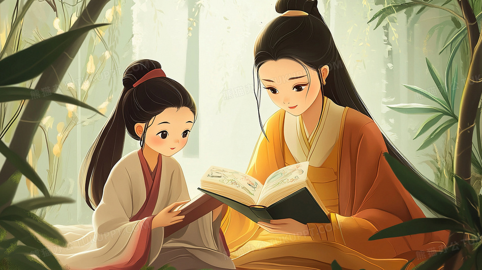 本作品内容为古代母亲教女儿念书学习教育插画, 格式为 jpg, 大小3 MB, 图片尺寸为2912 x 1632, 源文件无水印, 欢迎使用熊猫办公。 如认为平台内容涉嫌侵权,可通过邮件:tousu@tukuppt.com提出书面通知,我们将及时处理。