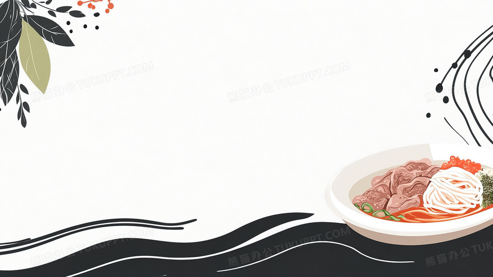 本作品内容为简约清新肉汤面背景, 格式为 jpg, 大小2 MB, 图片尺寸为2912 x 1632, 作品中背景图片无需修改, 源文件无水印,可以直接使用, 欢迎使用熊猫办公。 如认为平台内容涉嫌侵权,可通过邮件:tousu@tukuppt.com提出书面通知,我们将及时处理。