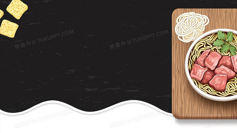 本作品内容为卡通餐饮美食肉卷拌面创意背景, 格式为 jpg, 大小2 MB, 图片尺寸为2912 x 1632, 作品中背景图片无需修改, 源文件无水印,可以直接使用, 欢迎使用熊猫办公。 如认为平台内容涉嫌侵权,可通过邮件:tousu@tukuppt.com提出书面通知,我们将及时处理。