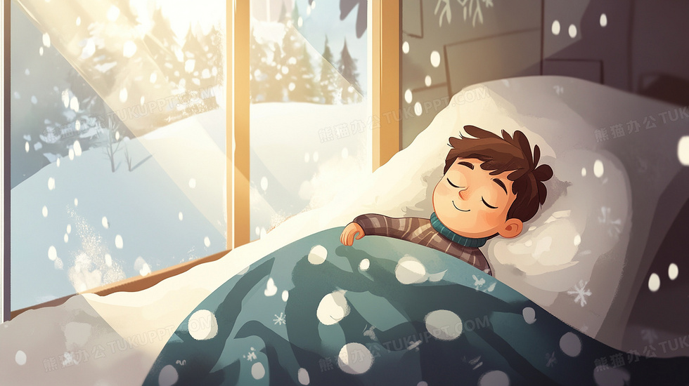 本作品内容为冬季温馨温暖室内床上盖着被子保暖的卡通男孩插画, 格式为 jpg, 大小2 MB, 图片尺寸为2912 x 1632, 源文件无水印, 欢迎使用熊猫办公。 如认为平台内容涉嫌侵权,可通过邮件:tousu@tukuppt.com提出书面通知,我们将及时处理。