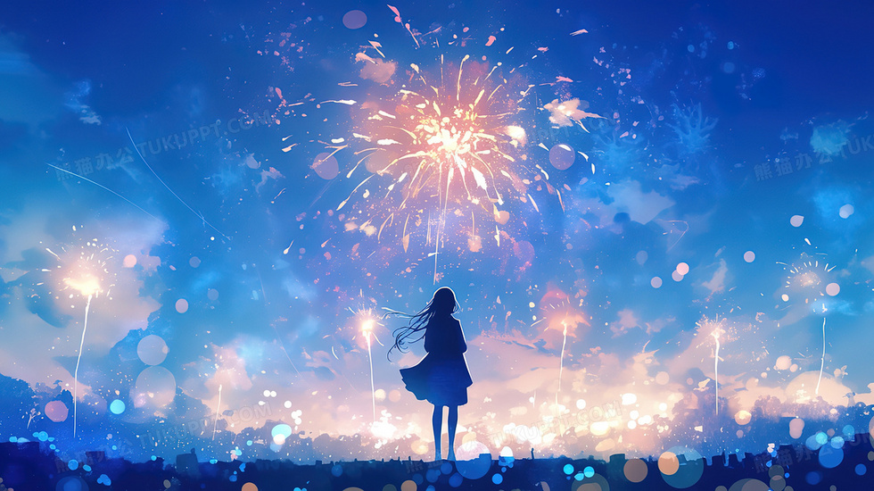 本作品内容为梦幻唯美天台看焰火女孩剪影插画, 格式为 jpg, 大小4 MB, 图片尺寸为2912 x 1632, 源文件无水印, 欢迎使用熊猫办公。 如认为平台内容涉嫌侵权,可通过邮件:tousu@tukuppt.com提出书面通知,我们将及时处理。
