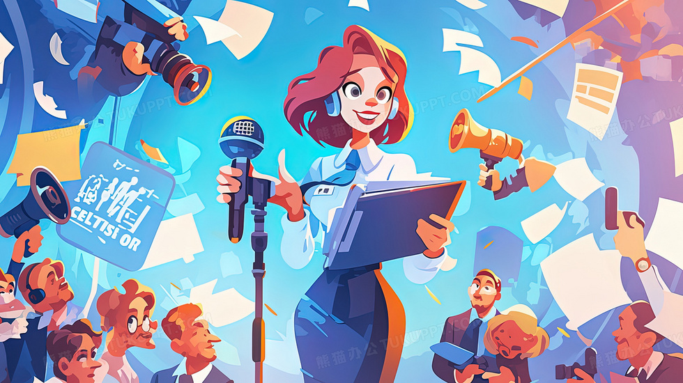 本作品内容为现场播报新闻的女主持人插画, 格式为 jpg, 大小3 MB, 图片尺寸为2912 x 1632, 源文件无水印, 欢迎使用熊猫办公。 如认为平台内容涉嫌侵权,可通过邮件:tousu@tukuppt.com提出书面通知,我们将及时处理。