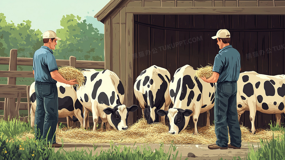 本作品内容为农场牧场农业养殖喂养牛群插画, 格式为 jpg, 大小3 MB, 图片尺寸为2912 x 1632, 源文件无水印, 欢迎使用熊猫办公。 如认为平台内容涉嫌侵权,可通过邮件:tousu@tukuppt.com提出书面通知,我们将及时处理。