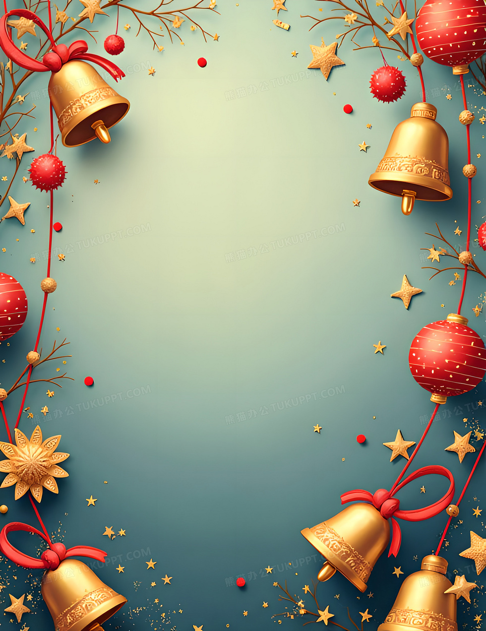 本作品内容为圣诞节喜庆铃铛边框背景, 格式为 jpg, 大小8 MB, 图片尺寸为2368 x 3072, 作品中背景图片无需修改, 源文件无水印,可以直接使用, 欢迎使用熊猫办公。 如认为平台内容涉嫌侵权,可通过邮件:tousu@tukuppt.com提出书面通知,我们将及时处理。