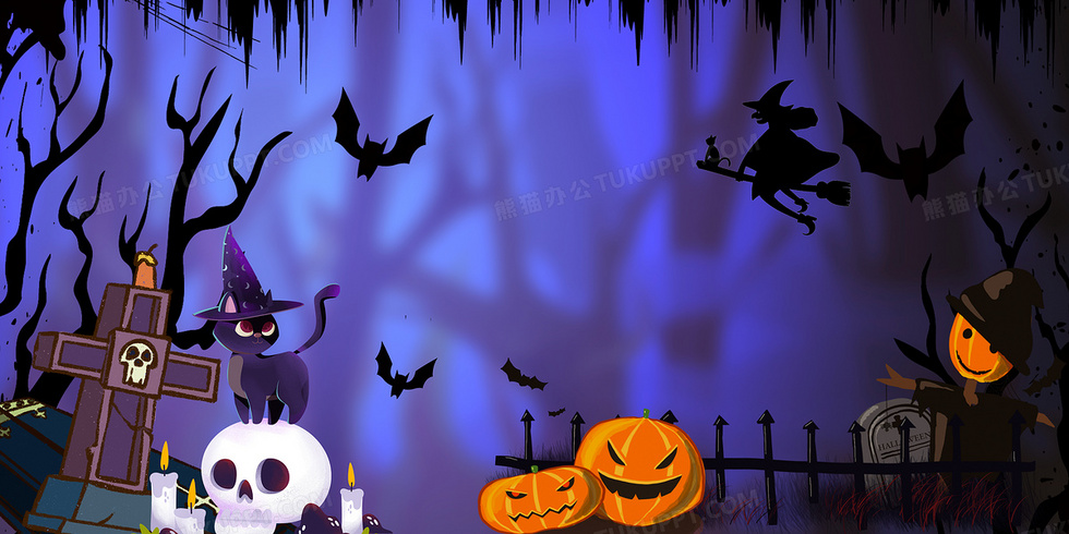 本作品内容为恐怖万圣节插画创意节日背景, 格式为 psd, 大小90 MB, 图片尺寸为4724 x 2362, 作品中背景图片无需修改, 源文件无水印,可以直接使用, 欢迎使用熊猫办公。 如认为平台内容涉嫌侵权,可通过邮件:tousu@tukuppt.com提出书面通知,我们将及时处理。