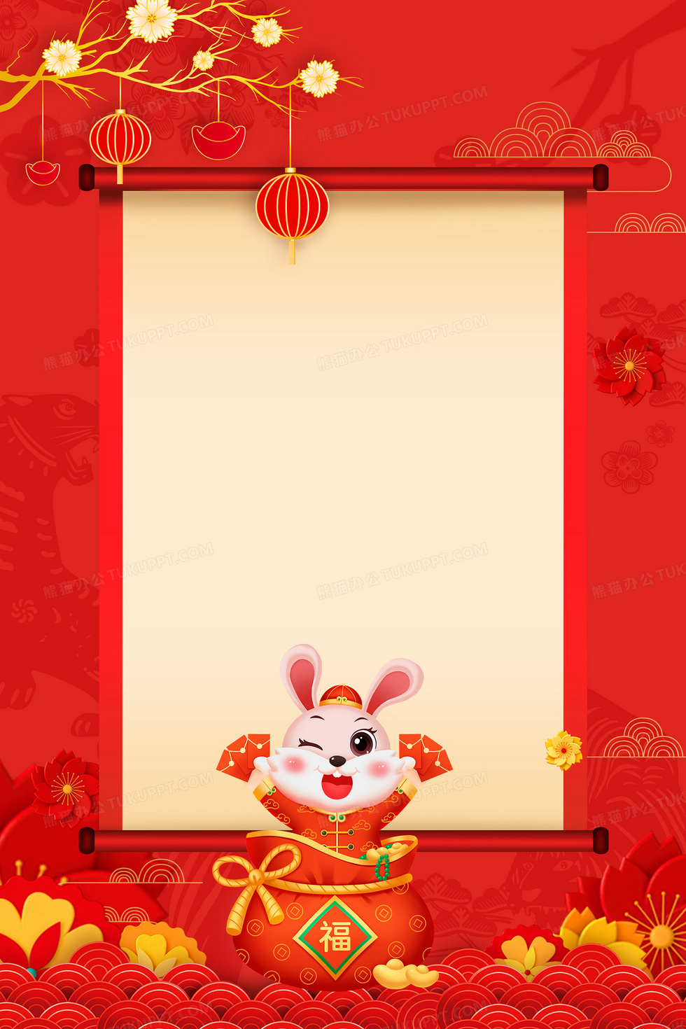 本作品内容为红色中国风兔年年会节目单喜庆2023新年背景, 格式为 psd, 大小48 MB, 图片尺寸为3543 x 5315, 作品中背景图片无需修改, 源文件无水印,可以直接使用, 欢迎使用熊猫办公。 如认为平台内容涉嫌侵权,可通过邮件:tousu@tukuppt.com提出书面通知,我们将及时处理。