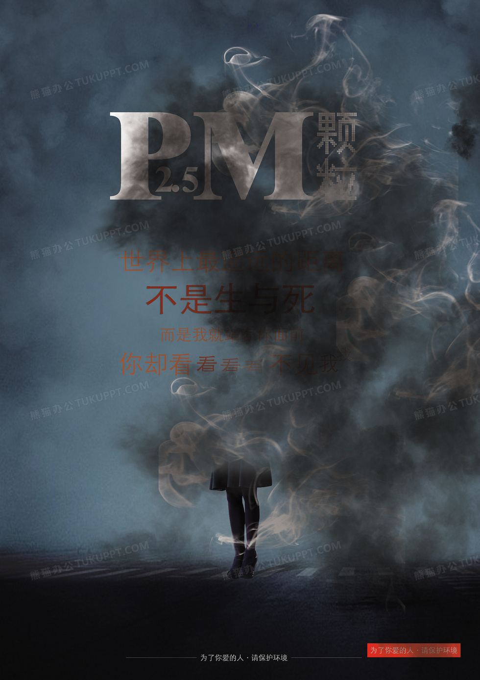 本作品内容为雾霾公益创意, 格式为 psd, 图片尺寸为3508 x 4961, 作品中背景图片无需修改, 源文件无水印,可以直接使用, 欢迎使用熊猫办公。 如认为平台内容涉嫌侵权,可通过邮件:tousu@tukuppt.com提出书面通知,我们将及时处理。