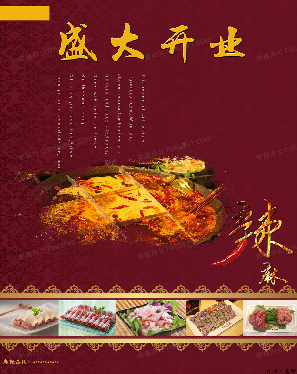 本作品内容为火锅店盛大开业背景素材, 格式为 psd, 图片尺寸为3580 x 4508, 作品中背景图片无需修改, 源文件无水印,可以直接使用, 欢迎使用熊猫办公。 如认为平台内容涉嫌侵权,可通过邮件:tousu@tukuppt.com提出书面通知,我们将及时处理。