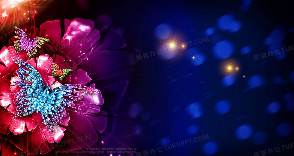 本作品内容为蝶变炫丽唯美背景, 格式为 psd, 图片尺寸为5315 x 2835, 作品中背景图片无需修改, 源文件无水印,可以直接使用, 欢迎使用熊猫办公。 如认为平台内容涉嫌侵权,可通过邮件:tousu@tukuppt.com提出书面通知,我们将及时处理。
