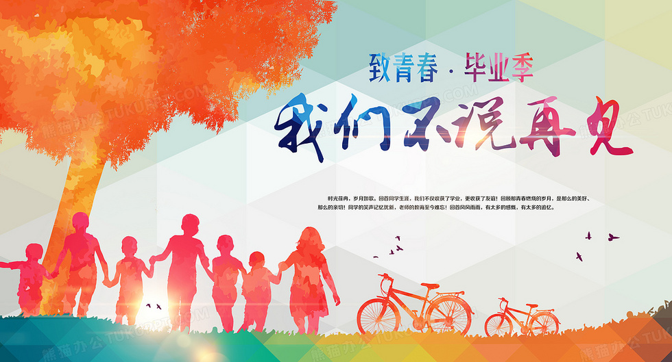 本作品内容为致青春毕业季, 格式为 psd, 图片尺寸为5315 x 2870, 作品中背景图片无需修改, 源文件无水印,可以直接使用, 欢迎使用熊猫办公。 如认为平台内容涉嫌侵权,可通过邮件:tousu@tukuppt.com提出书面通知,我们将及时处理。