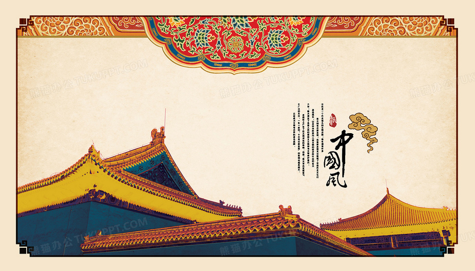 本作品内容为中国风素材, 格式为 jpg, 图片尺寸为4200 x 2400, 作品中背景图片无需修改, 源文件无水印,可以直接使用, 欢迎使用熊猫办公。 如认为平台内容涉嫌侵权,可通过邮件:tousu@tukuppt.com提出书面通知,我们将及时处理。