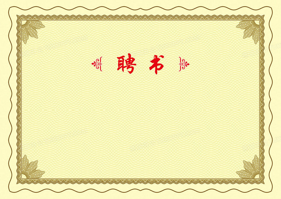 本作品内容为聘书背景素材, 格式为 psd, 图片尺寸为4156 x 2953, 作品中背景图片无需修改, 源文件无水印,可以直接使用, 欢迎使用熊猫办公。 如认为平台内容涉嫌侵权,可通过邮件:tousu@tukuppt.com提出书面通知,我们将及时处理。