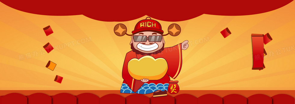 本作品内容为天猫年终盛典扁平财神小人背景banner, 格式为 psd, 图片尺寸为1920 x 681, 作品中背景图片无需修改, 源文件无水印,可以直接使用, 欢迎使用熊猫办公。 如认为平台内容涉嫌侵权,可通过邮件:tousu@tukuppt.com提出书面通知,我们将及时处理。