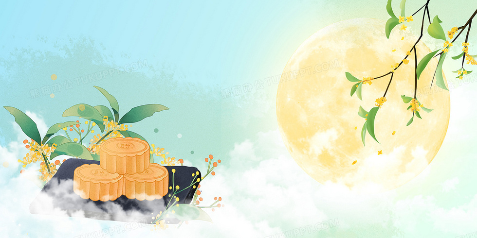 本作品内容为简约清新风桂花赏月月饼国潮背景, 格式为 psd, 大小82 MB, 图片尺寸为4724 x 2362, 作品中背景图片无需修改, 源文件无水印,可以直接使用, 欢迎使用熊猫办公。 如认为平台内容涉嫌侵权,可通过邮件:tousu@tukuppt.com提出书面通知,我们将及时处理。