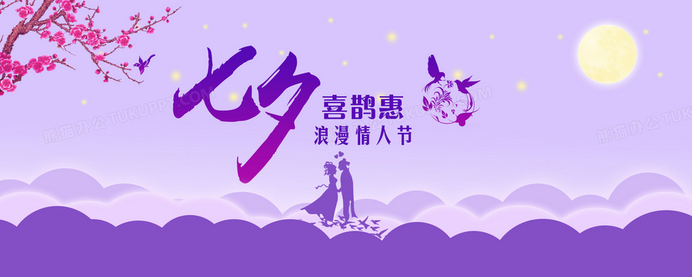 本作品内容为七夕浪漫情人节喜鹊惠banner, 格式为 psd, 图片尺寸为2000 x 800, 作品中背景图片无需修改, 源文件无水印,可以直接使用, 欢迎使用熊猫办公。 如认为平台内容涉嫌侵权,可通过邮件:tousu@tukuppt.com提出书面通知,我们将及时处理。