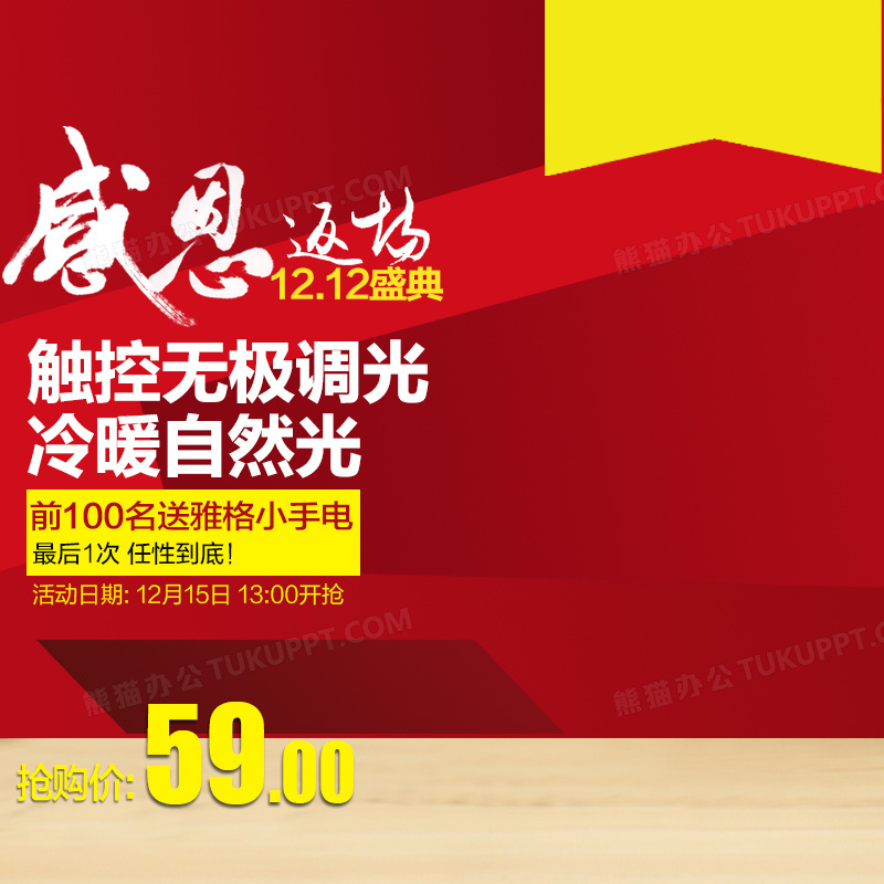 本作品内容为双十二感恩返场促销主图, 格式为 psd, 图片尺寸为800 x 800, 作品中背景图片无需修改, 源文件无水印,可以直接使用, 欢迎使用熊猫办公。 如认为平台内容涉嫌侵权,可通过邮件:tousu@tukuppt.com提出书面通知,我们将及时处理。