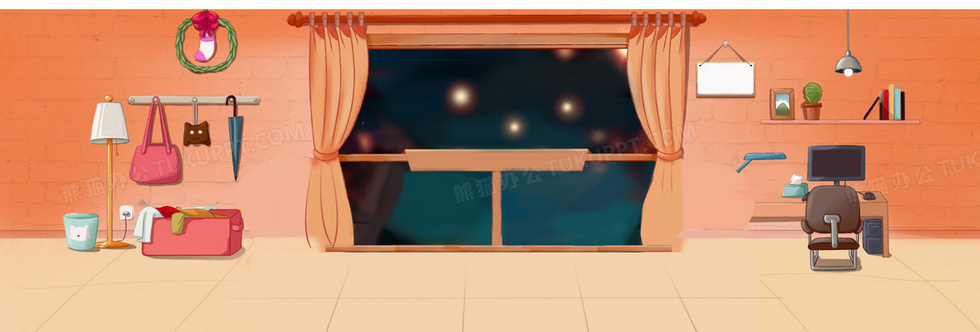 本作品内容为卡通室内装饰背景, 格式为 jpg, 图片尺寸为1920 x 650, 作品中背景图片无需修改, 源文件无水印,可以直接使用, 欢迎使用熊猫办公。 如认为平台内容涉嫌侵权,可通过邮件:tousu@tukuppt.com提出书面通知,我们将及时处理。