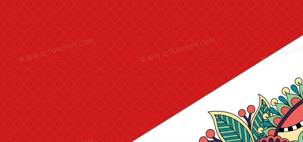 本作品内容为红色花纹背景, 格式为 psd, 图片尺寸为1920 x 900, 作品中背景图片无需修改, 源文件无水印,可以直接使用, 欢迎使用熊猫办公。 如认为平台内容涉嫌侵权,可通过邮件:tousu@tukuppt.com提出书面通知,我们将及时处理。