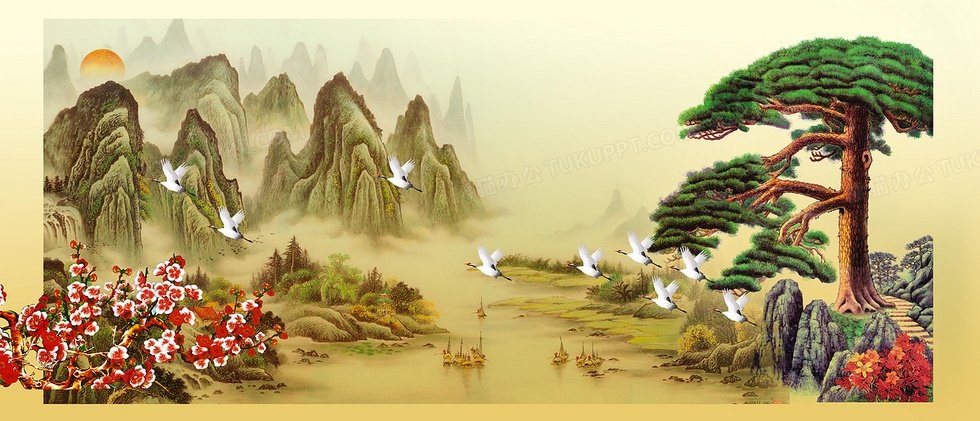 本作品内容为中国风山水画背景, 格式为 psd, 图片尺寸为5000 x 2144, 作品中背景图片无需修改, 源文件无水印,可以直接使用, 欢迎使用熊猫办公。 如认为平台内容涉嫌侵权,可通过邮件:tousu@tukuppt.com提出书面通知,我们将及时处理。
