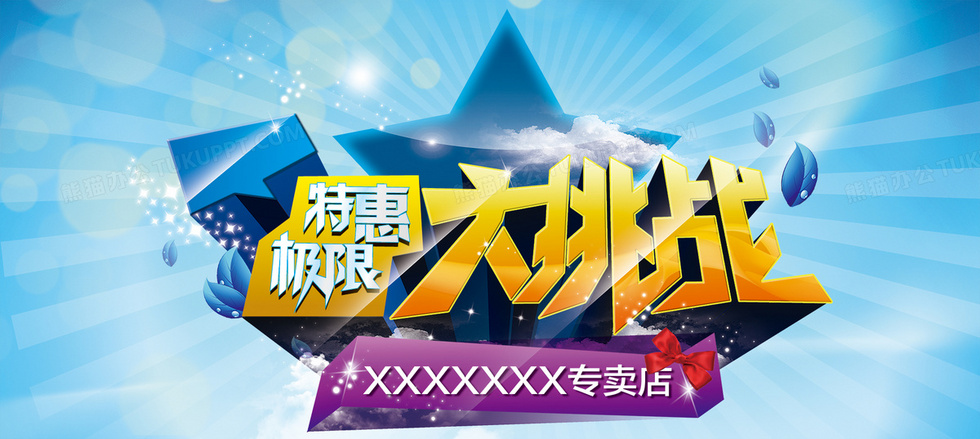 本作品内容为特惠大挑战海报, 格式为 psd, 图片尺寸为1920 x 859, 作品中背景图片无需修改, 源文件无水印,可以直接使用, 欢迎使用熊猫办公。 如认为平台内容涉嫌侵权,可通过邮件:tousu@tukuppt.com提出书面通知,我们将及时处理。