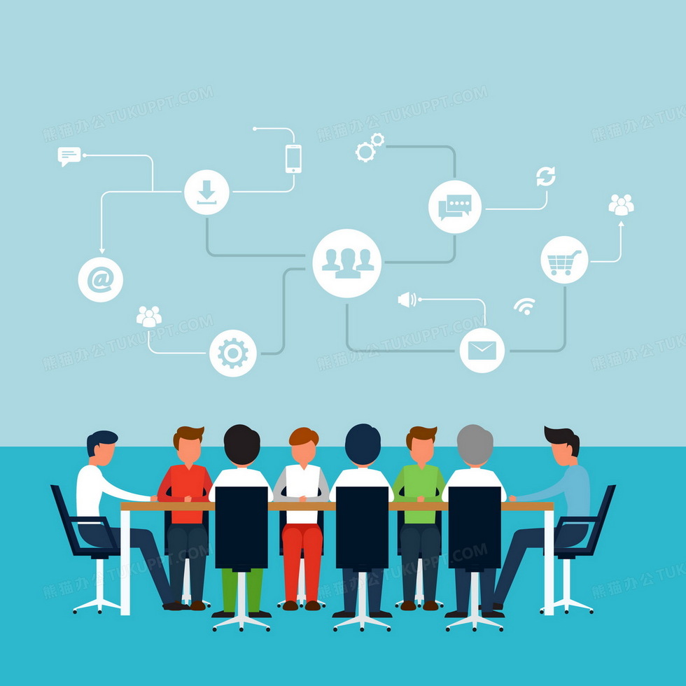 本作品内容为开会会议, 格式为 ai, 图片尺寸为2100 x 2100, 作品中背景图片无需修改, 源文件无水印,可以直接使用, 欢迎使用熊猫办公。 如认为平台内容涉嫌侵权,可通过邮件:tousu@tukuppt.com提出书面通知,我们将及时处理。