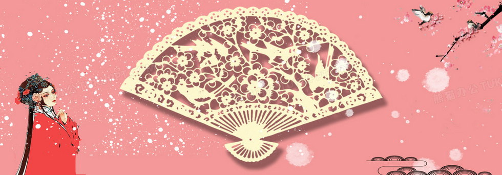 本作品内容为戏曲曲艺镂空扇子梅花下雪粉色背景, 格式为 psd, 图片尺寸为1920 x 670, 作品中背景图片无需修改, 源文件无水印,可以直接使用, 欢迎使用熊猫办公。 如认为平台内容涉嫌侵权,可通过邮件:tousu@tukuppt.com提出书面通知,我们将及时处理。