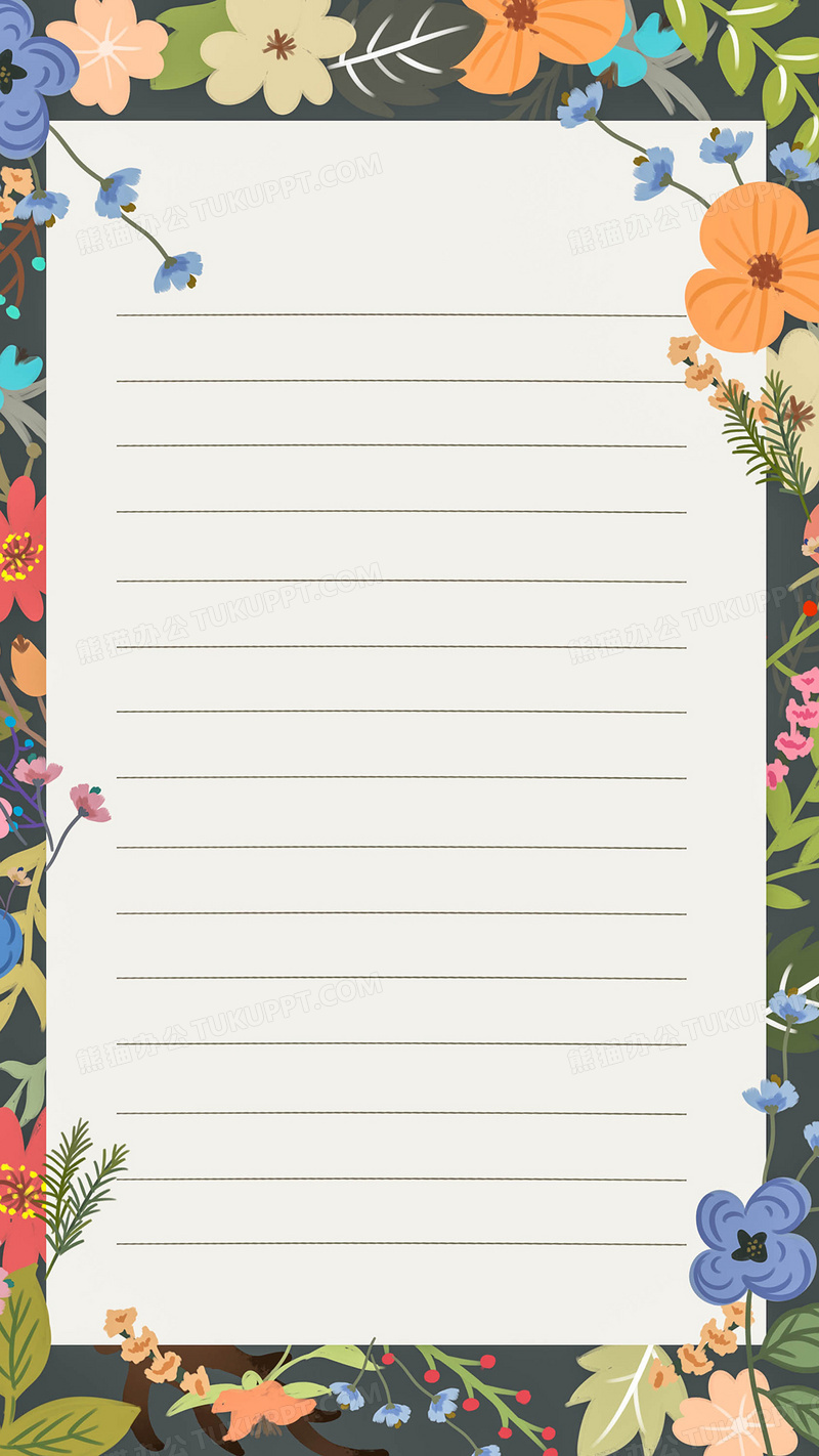 本作品内容为手绘花卉纸张边框H5背景, 格式为 jpg, 图片尺寸为1080 x 1920, 作品中背景图片无需修改, 源文件无水印,可以直接使用, 欢迎使用熊猫办公。 如认为平台内容涉嫌侵权,可通过邮件:tousu@tukuppt.com提出书面通知,我们将及时处理。