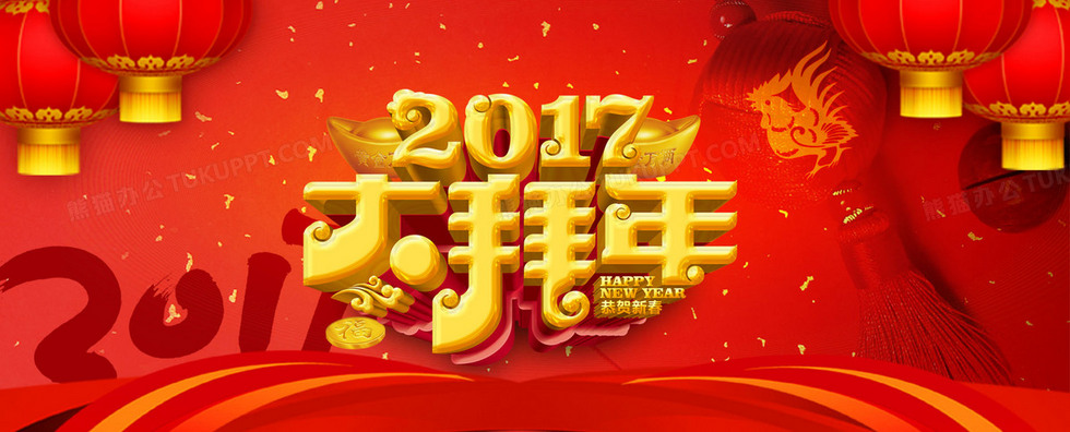 本作品内容为2017年大拜年背景海报, 格式为 psd, 图片尺寸为1920 x 776, 作品中背景图片无需修改, 源文件无水印,可以直接使用, 欢迎使用熊猫办公。 如认为平台内容涉嫌侵权,可通过邮件:tousu@tukuppt.com提出书面通知,我们将及时处理。