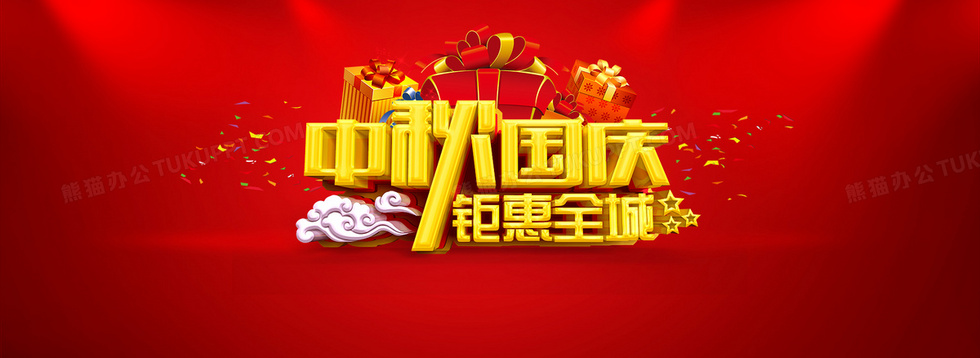 本作品内容为中秋国庆喜庆背景, 格式为 psd, 图片尺寸为1920 x 700, 作品中背景图片无需修改, 源文件无水印,可以直接使用, 欢迎使用熊猫办公。 如认为平台内容涉嫌侵权,可通过邮件:tousu@tukuppt.com提出书面通知,我们将及时处理。