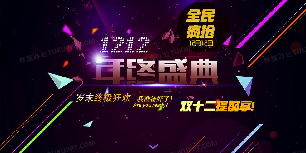 本作品内容为双十二年终盛典紫色淘宝天猫, 格式为 psd, 图片尺寸为7087 x 3543, 作品中背景图片无需修改, 源文件无水印,可以直接使用, 欢迎使用熊猫办公。 如认为平台内容涉嫌侵权,可通过邮件:tousu@tukuppt.com提出书面通知,我们将及时处理。