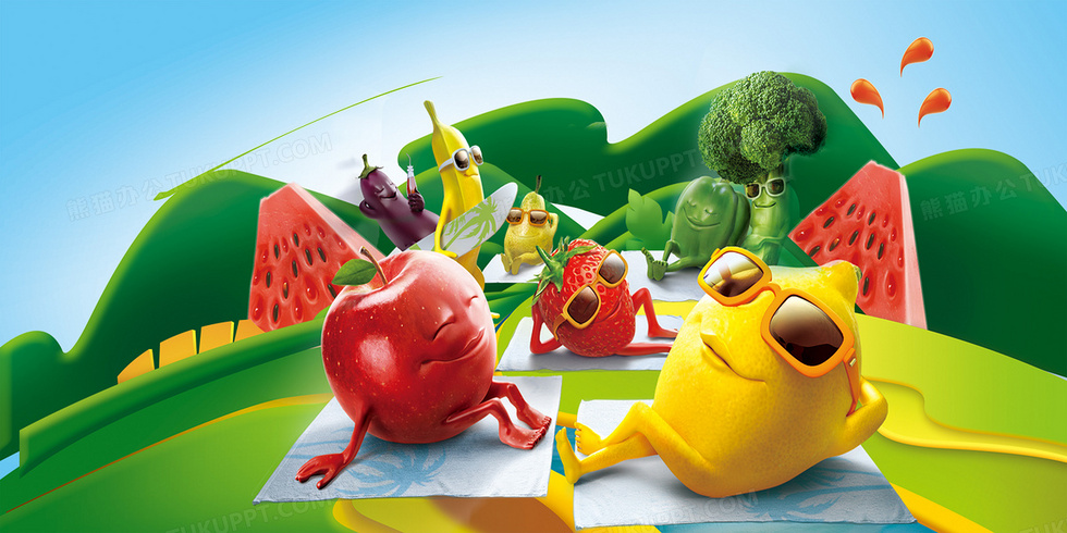 本作品内容为新鲜水果卡通宣传海报背景素材, 格式为 psd, 图片尺寸为4000 x 2000, 作品中背景图片无需修改, 源文件无水印,可以直接使用, 欢迎使用熊猫办公。 如认为平台内容涉嫌侵权,可通过邮件:tousu@tukuppt.com提出书面通知,我们将及时处理。