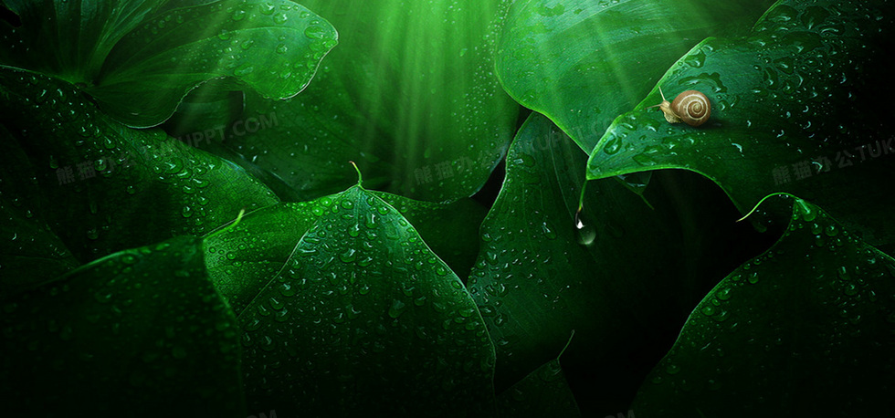 本作品内容为绿色树叶蜗牛背景装饰, 格式为 jpg, 图片尺寸为1920 x 897, 作品中背景图片无需修改, 源文件无水印,可以直接使用, 欢迎使用熊猫办公。 如认为平台内容涉嫌侵权,可通过邮件:tousu@tukuppt.com提出书面通知,我们将及时处理。