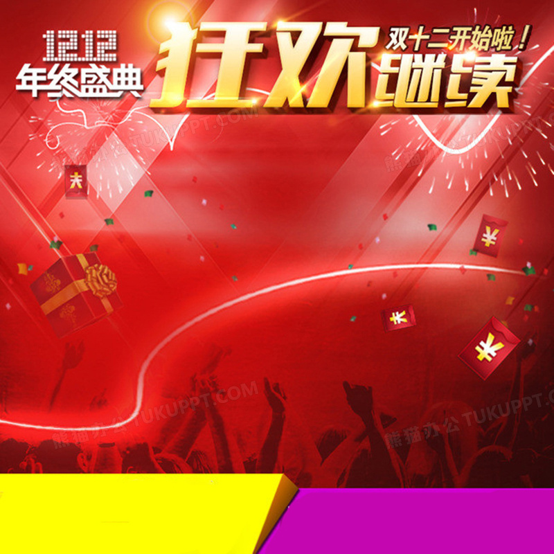 本作品内容为双十二红色狂欢庆典主图背景, 格式为 jpg, 图片尺寸为800 x 800, 作品中背景图片无需修改, 源文件无水印,可以直接使用, 欢迎使用熊猫办公。 如认为平台内容涉嫌侵权,可通过邮件:tousu@tukuppt.com提出书面通知,我们将及时处理。