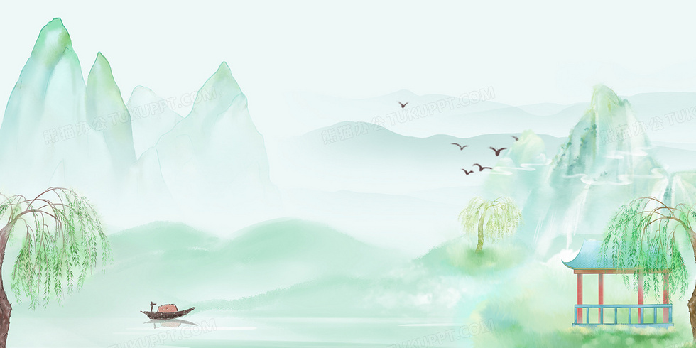 本作品内容为水墨风绿色春季背景图, 格式为 psd, 大小103 MB, 图片尺寸为4724 x 2362, 作品中背景图片无需修改, 源文件无水印,可以直接使用, 欢迎使用熊猫办公。 如认为平台内容涉嫌侵权,可通过邮件:tousu@tukuppt.com提出书面通知,我们将及时处理。